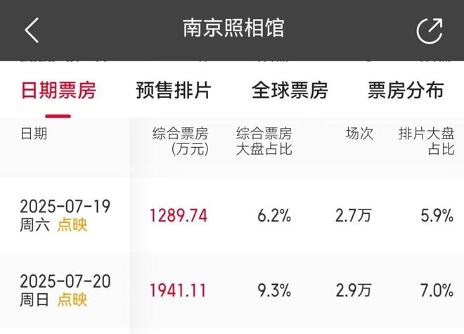 这时候,观众把目光放到《南京照相馆》上了。此片点映票房相当出彩,详细数据如下: