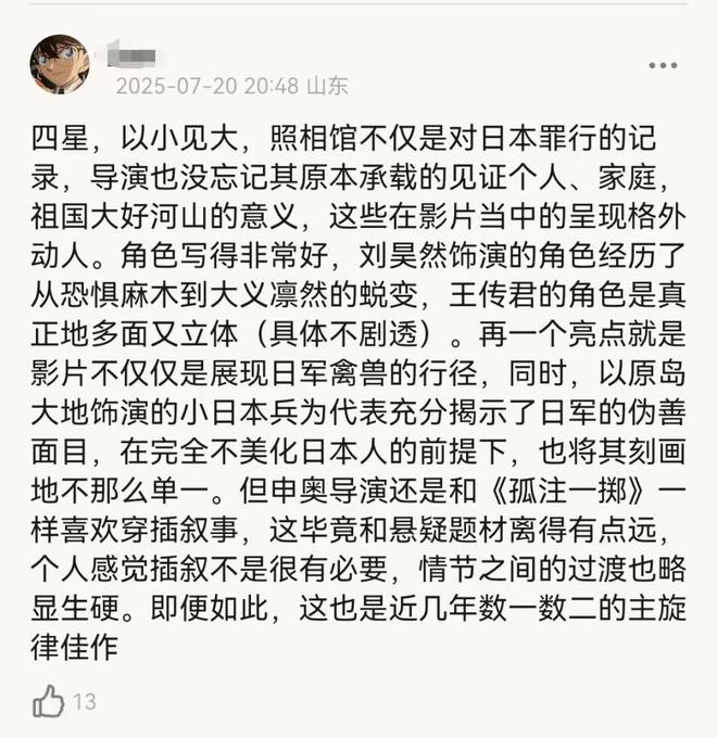 暑期档征程已过半,国产电影是时候该出击了,目前有两部影片具有小爆款体质,一部是大鹏的《长安的荔枝》,另外一部便是点映中的《南京照相馆》。